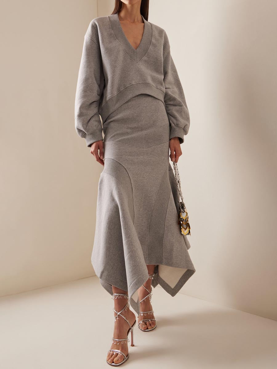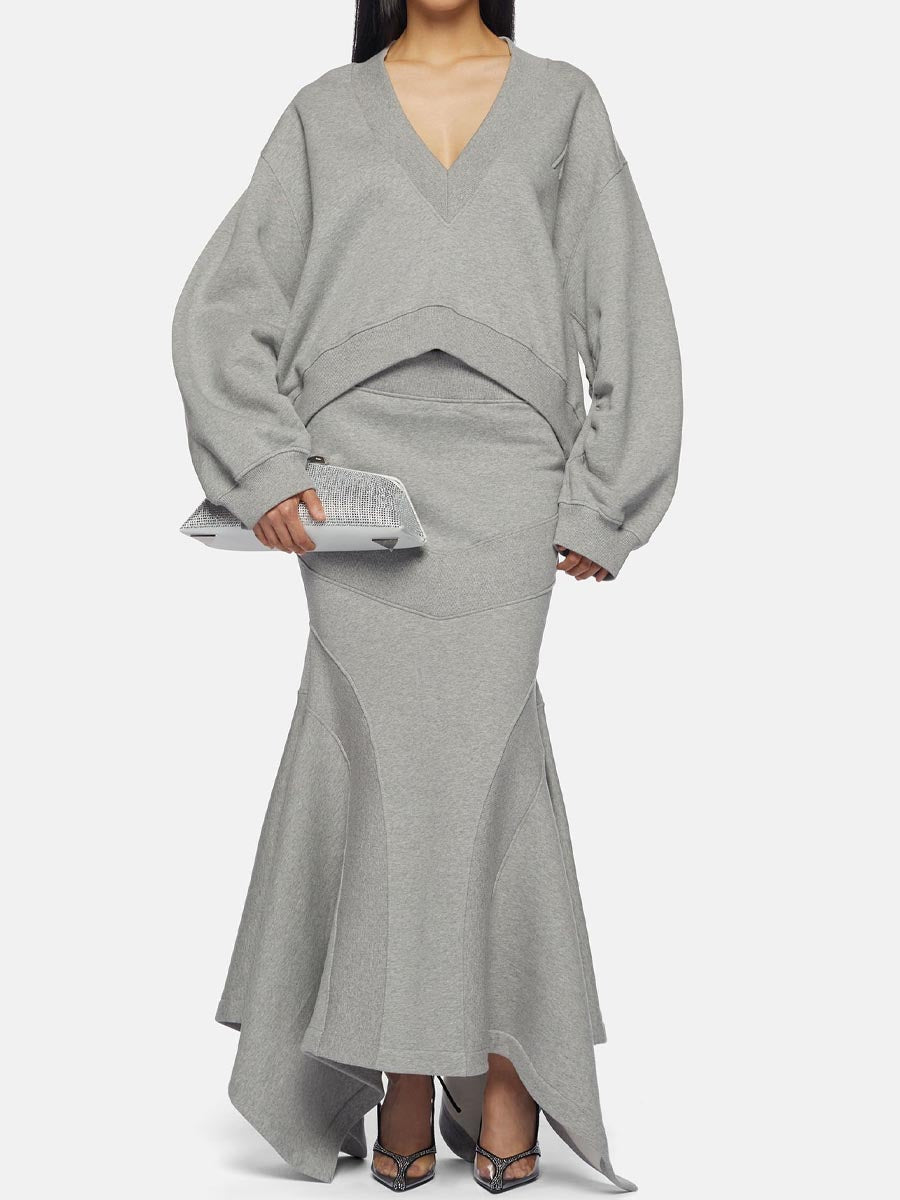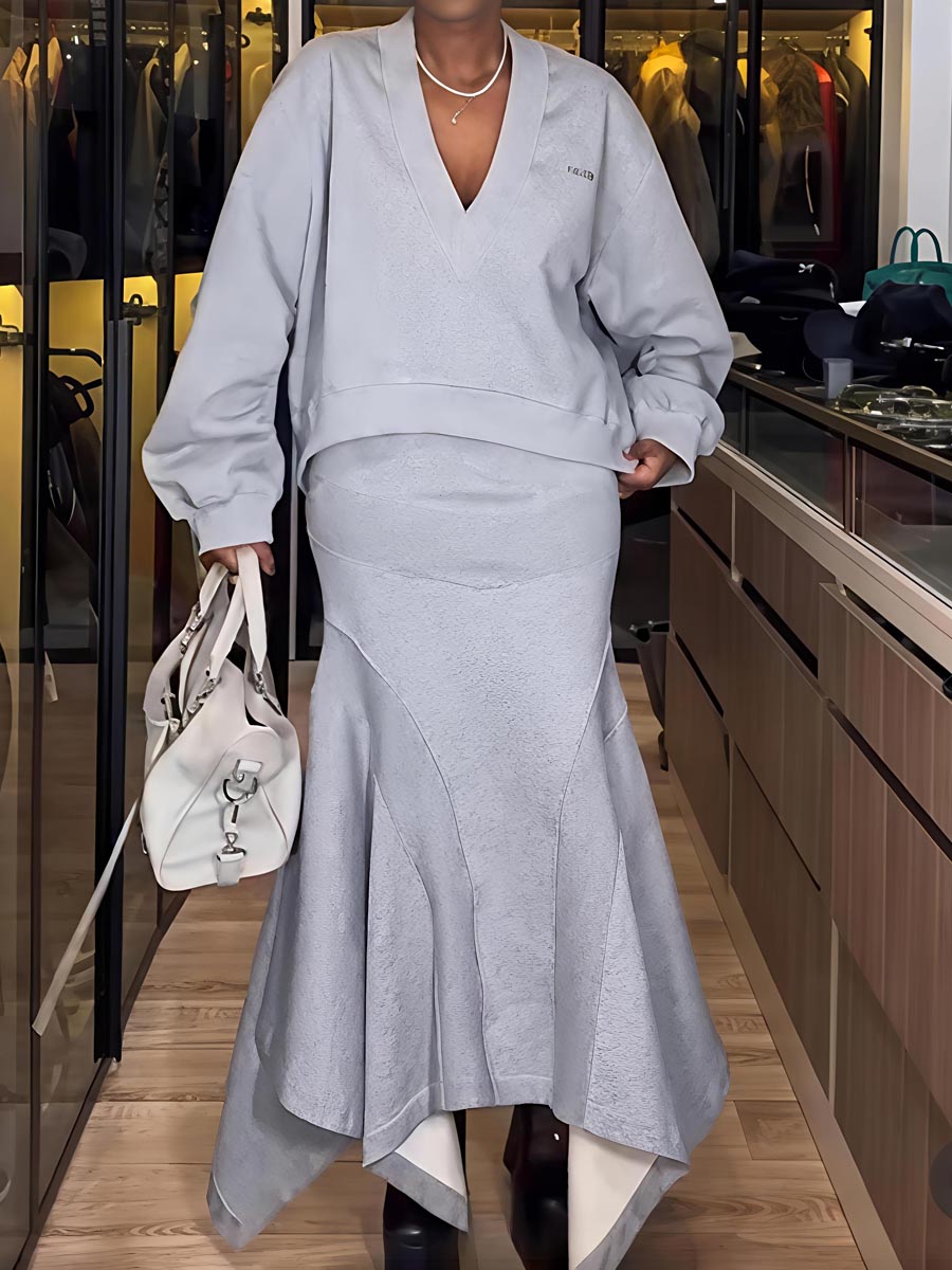 Fashion Patchwork V Neck Top & Mermaid Skirt