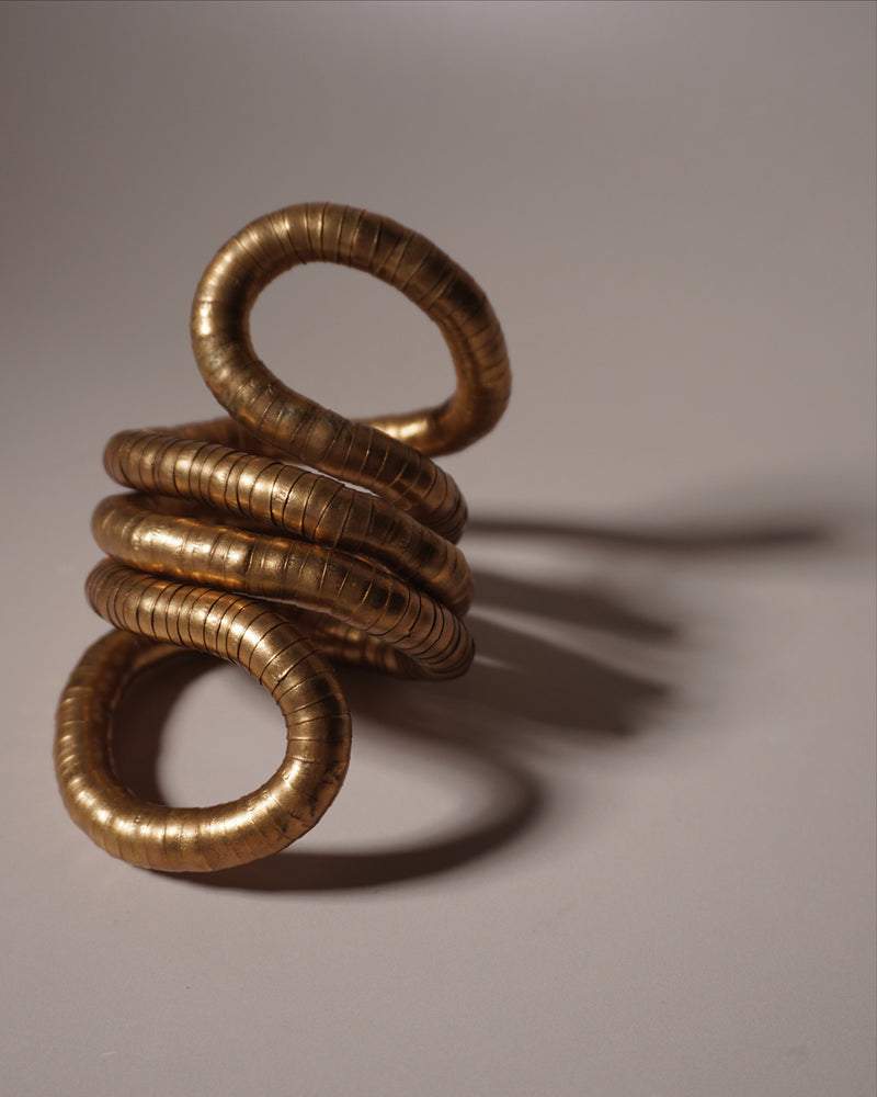 - Vintage Brutalist style brass necklace, malleable to hold any shape.